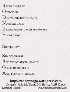 And here you have distilled the essence of blogging: we are enchanted by our own cleverness. Clever marketing? I named my pony The $700 Pony. After the book I wrote about her. She had another name, but let me tell you the second that book contract came across the ethernet, her old name was yesterdays news.