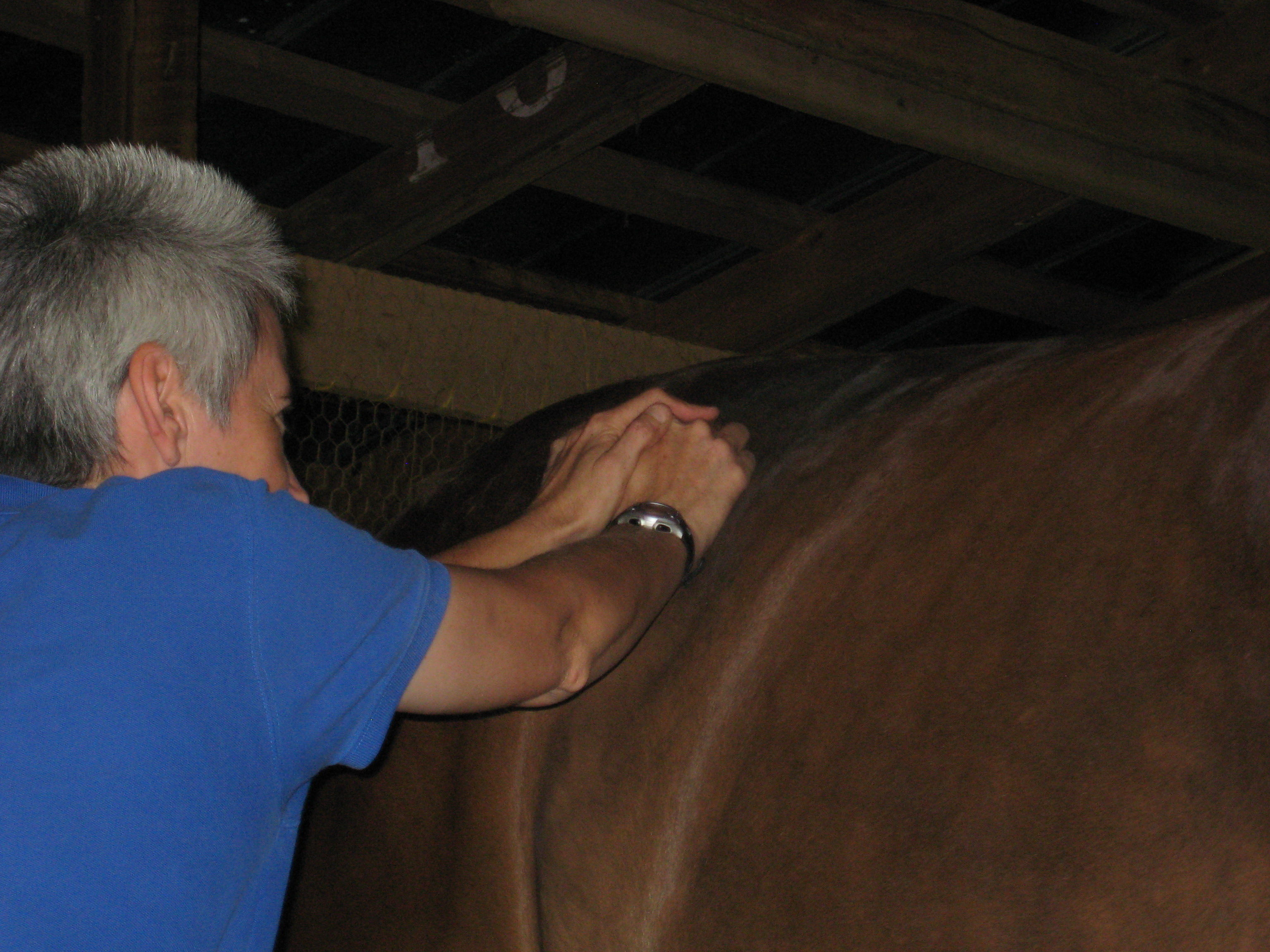 This weekend, the barn had a visit from Sharon Melnick, L.M.T. for people & horses. Although Sharon could easily hire herself out, she seldom works outside of her own critters. As a favor, she trekked from her remote patch of woods over to our remote patch. In addition to getting the the horses massaged, I hoped to improve my own technique.
