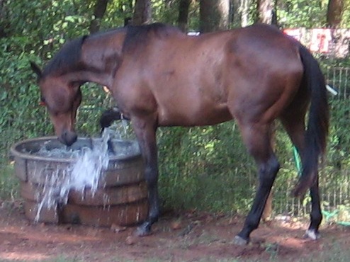 Previous Horse was grouchy old coot who had moments of supreme ill-temper. On the night before he died, one of his last acts on earth was to kick me. Therefore, it had always been made extremely clear to him that when the halter was on, he must behave. Stand where he was put. No biting. No kicking. He could bite the air. He could pin his ears. But any illegal action would would result in swift justice. Halter off, all bets off.