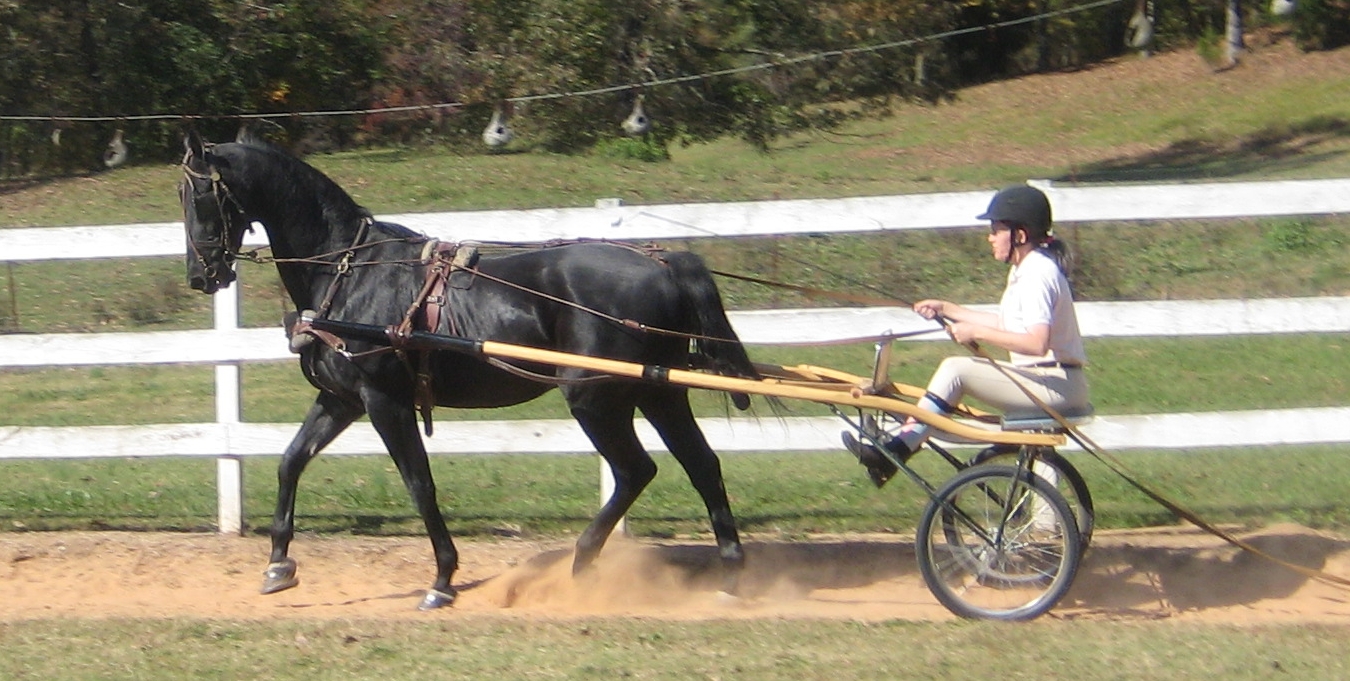 Nor does benign neglect work with driving. A driving horse with blinkers cannot see the cart. This is good because it means he will not think the cart is gaining on him to have him for lunch. This is bad because it’s up to the driver to keep the cart from crashing into the fence. If I got sloppy, the horse was not going to save my sorry self and finish jumping the combination on his own initiative. Turns have to be planned for both into and out of. In a ring, there is always another turn coming up.