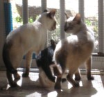 The b&w kitten is our feral, nonexistent 7th cat. She (? By fiat. We already have 5 males) wants to be indoors & near the kittens but not in the same room as the peoples. At night, she comes out to play and snuggle with her posse. In the morning, we see her briefly as moving blur diving into one of her many hiding places.