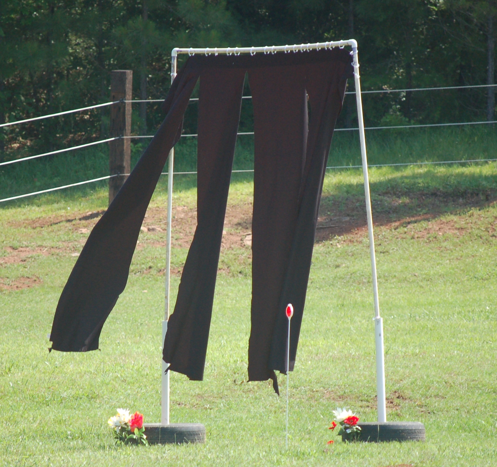 Initially, he wasn’t thrilled to have them moving toward him, but he expressed reservation more than hysteria. Within 10 minutes, I was comfortably tapping him all over with a noodle. I even rested one on his back. Fortunately, it didn’t fall off. I wasn’t ready to test the system that far. Mind you, this was al fresco. He could have run off at any point. I can think of a lot of horses who would have.