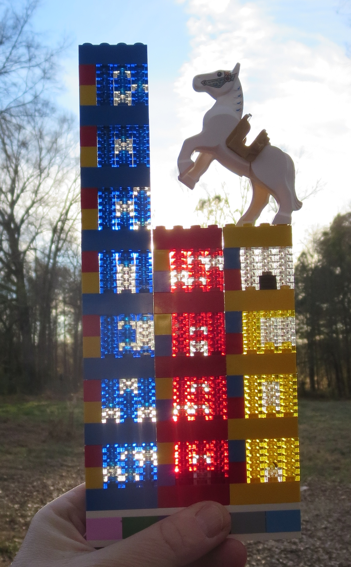 As a text project for the BrickFair exhibition, I created my new blog address, rodneyssaga.com, in translucent LEGO. Beautiful in the light.