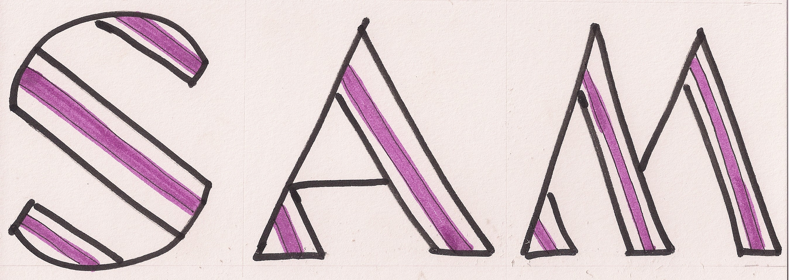 Letter design inspiration from A Letter a Week 2014: Alphabet Of Tricks I, J, K, L. I intended curved sections. Did not turn out well. My reach exceeds my artistic grasp.