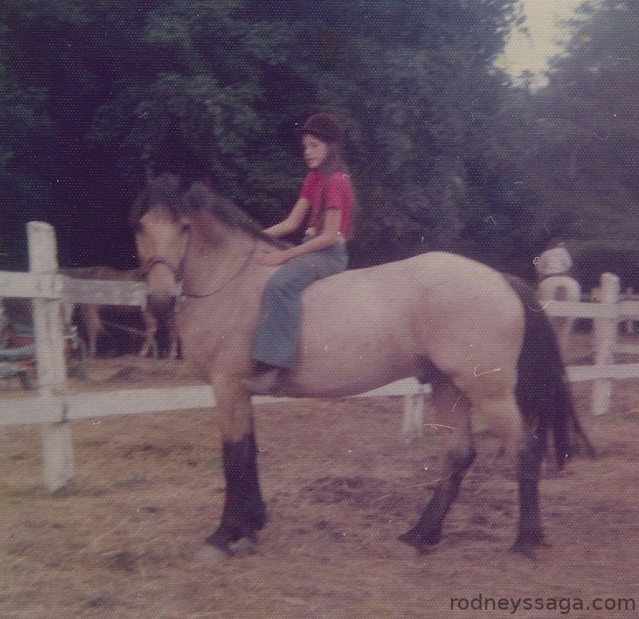 Hard to tell because pic is faded, but looks like he’s either buckskin or dark red roan.
