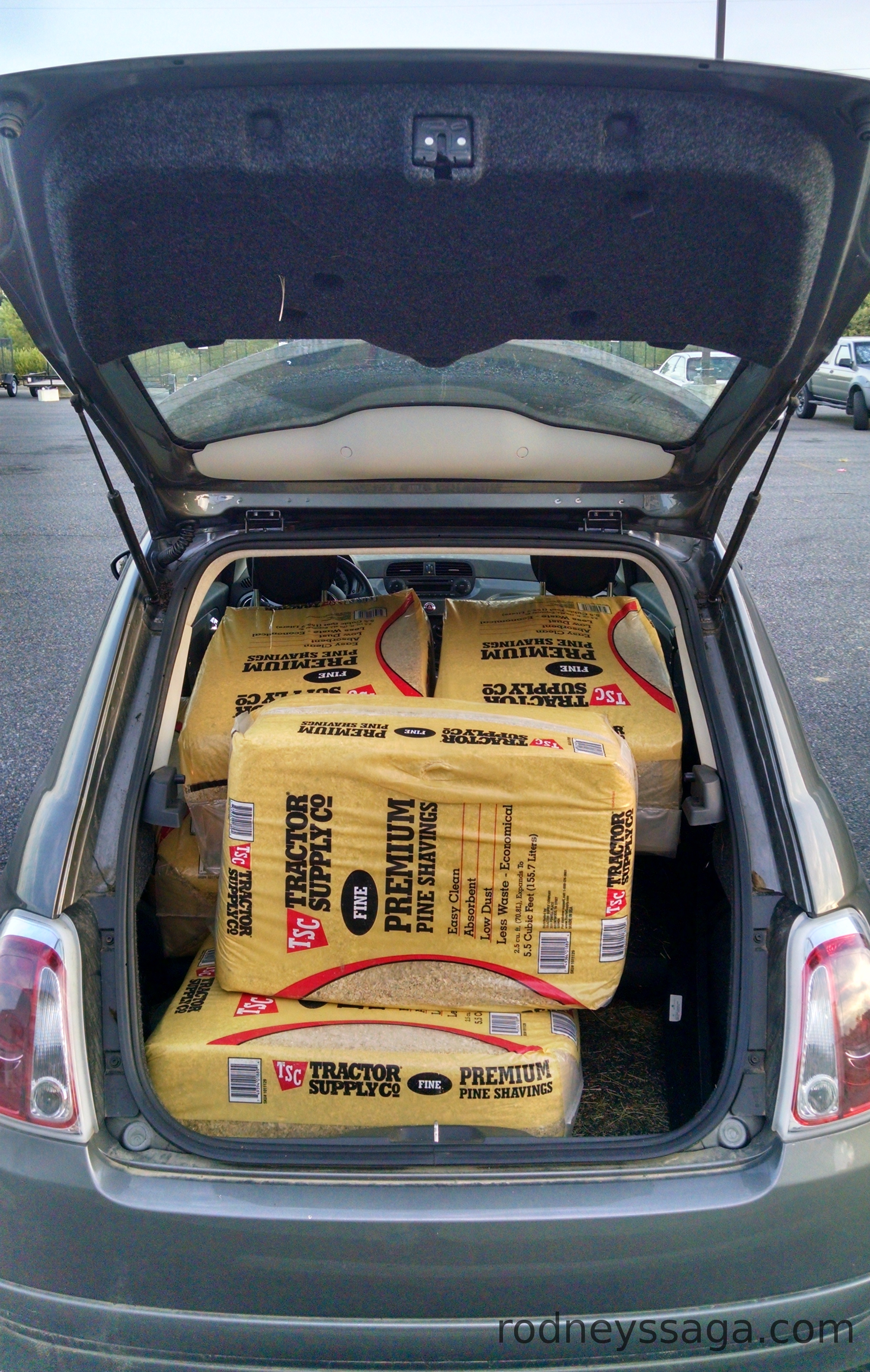 This was a one-off while the stall was in temporary use. Rodney & Milton are now out in the field. When the stall was regularly used, shavings came via the larger car or the truck. Yes, good compost. Eventually. We use it to fill eroded areas.
