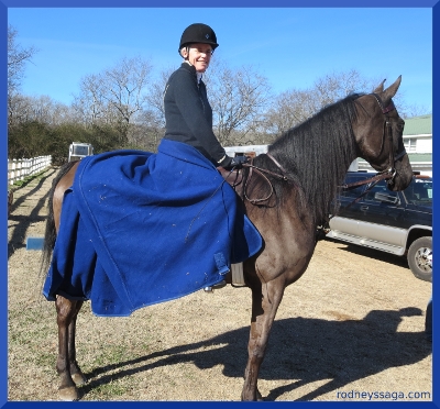 When I glanced at your initial photo in this post with the blue cloth draped around you I thought it was a side-saddle habit at first glance! I thought you’d branched out into yet another style of riding 😉