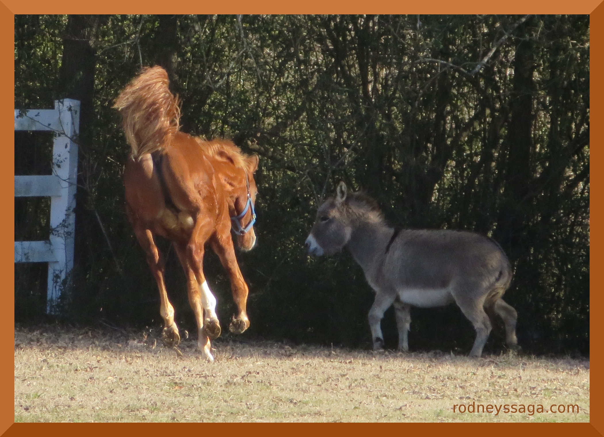 Who is that freaking out at the adorable little donkey?