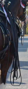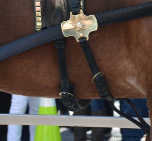 Only the wheelers wear britching, which attached under the belly. The other six did not have as much leather under their barrels. The leaders sported extra bling.