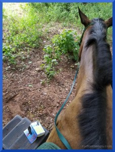 We’ve been doing stand lessons at the mounting block. If I sit on the block, he will stand next to it forever. If I mount up, he feels the need to move off. This tells me he is not at peace with having a rider on his back. So, I sit on the block. I stand on the block. I lean on the saddle. I get on. We stand. I get off. I sit, stand, lean, get on. And so on. And so on. It’s good for his mind and it’s something we can do while his ankle deflates.