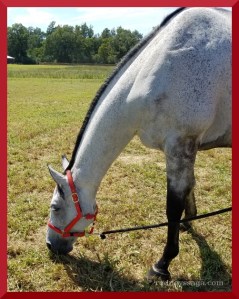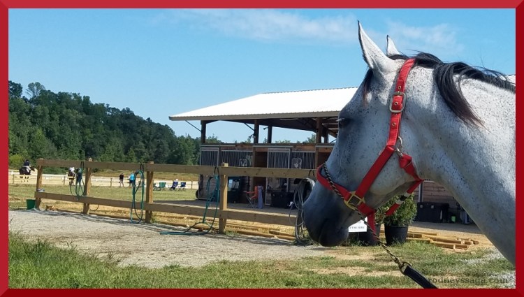As soon as he got off the trailer, he greeted his 15 new best friends. Although he stared at everything, he failed to dance and fuss. He was a bit distraught when Greg walked him down to the XC, away from the new friends. Note to self, Milton doesn’t like to be alone. I wonder how this will play out in competition.