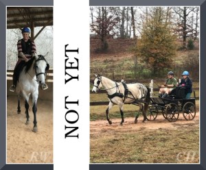 It was the day Milton walked about with me leaning on one stirrup [I Ride]. He was a star. We gave him a break, hitched up, and tried to to school some driving. He was a pill. He wouldn’t go in the ring (in his defense, it is a steep hill). Once in the ring, he revisited getting silly at the end of the ring [On the Move]. He whined and fussed the entire time. He’s had worse individual moments, but this was the worst he has been consistently.