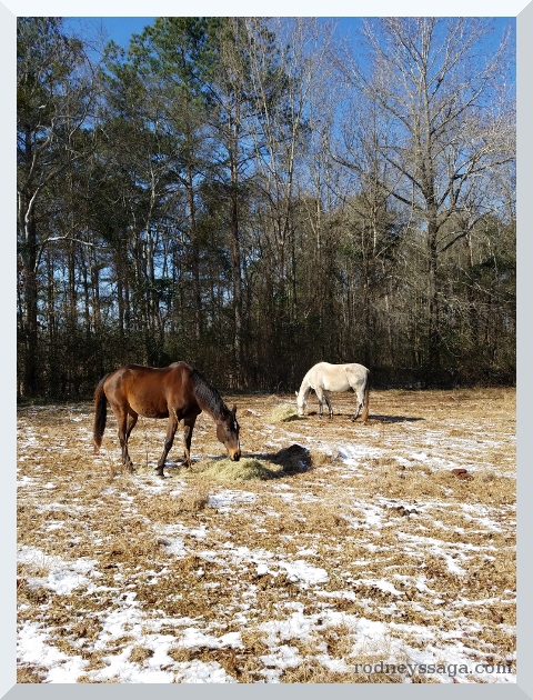 Previous Image Next Image snow 2018 eating hay This is where they were sunning, so this is where their snack was served. Spoiled? Not them.