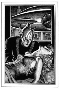 The whole thing began as a series of illustration samples I prepared for an art class. I’ve been a book illustrator since 1993 and I’m an expert style copyist — a skill I continue to develop. One of my favorite art styles is science fiction magazine art from the 1920’s to the 1950’s. Most is hackneyed and there’s a wide range of quality, especially in the interior art. But if you look past the tired content you’ll find artists well-worth notice. Earle Bergey, Alex Schomburg, Edd Cartier, Frank R. Paul, Hannes Bok, and Virgil Finlay are just a few of the notable artists from the pulp era.
