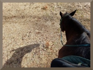 Rodney never gets bored. We are up to 20+ minutes of mounted stand exercise. He doesn’t shuffle his feet; nor does he zone out. He stands, quiet and relaxed, engaged in surveying his world. He does standing meditation better than most people.