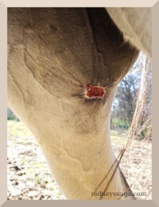 Surgery was 4 & 1/2 weeks ago on Friday 2/9. The first medical post was on Tuesday 2/13 [Update]. After that, the stitches gradually lost hold. This was not desirable, but not unexpected. On Friday morning 2/16, Milton had mild colic symptoms, most likely brought on by 8 days of stall rest. Vet did not seem surprised to hear from us. A shot of Banamine, wait for the poop, and Milton was good to go. Since then, it has been smooth sailing.