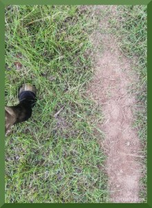 Rodney probably thinks walking in a straight line along paths he walks every day is about as interesting as dirt. I say go with it. He veers left, go left, left, left. He veers right, go right, right, right. Eventually going straight and where you asked will seem much “easier.” If you haven’t asked him to work at a faster speed and maintain that speed (read as: ready to reinforce your request), then he’s learned he can pick his own pace and you’re OK with it. I wonder if he’s thinking, “Who’s that person up there on my back? Oh, she’s just the passenger. She’s good with whatever I choose.” In dog training there’s this old saying : You get what you train. 😉