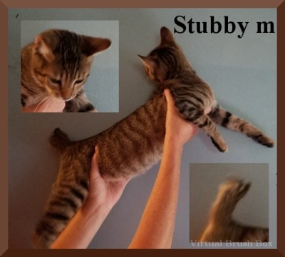While the are similar in looks and are obviously siblings, there are a few differences. Long Tail and the male Stubby have sleeker, lighter brown coats and more pointed faces, marginally. Princess and the female Stubby have fluffy, darker coats and rounder faces, marginally. Male Stubby is the heaviest; female Stubby, the lightest, again marginally. Apologies for the blurry and erratic photos. Clearly, we need to work on our kitten photography.