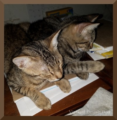 New Stepping Stone Farm barn cats in training. From the same farm as mine, different moms, dads unknown. That farm has become an inadvertent home for wayward lady cats. Owner conscientious about spaying. Cats kept showing up pregnant. I guess the word got out.