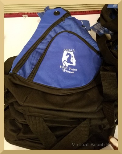 My haul was five ribbons, three bags, and one jacket. I won the adult high point despite losing the adult division due to points from the other three divisions.