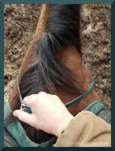 Rodney’s been walking quietly for a while now, but not *quite* on the buckle. I’ve kept a nice, long, loopy rein to give him his head. At the same time, I’ve choked up on the rein just enough that I can grab the wheel if needed.
