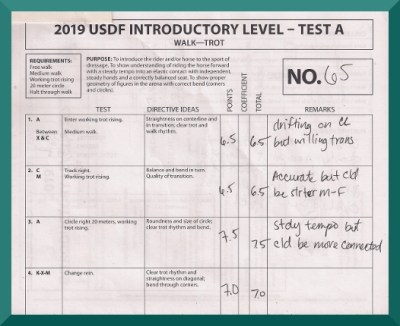 Class 3 – 2019 USDF Intro Test A (Walk-Trot) – Adult, 1st of 3, 68%