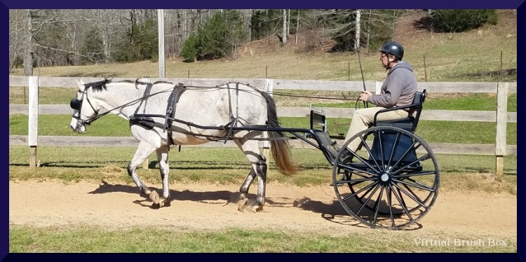 Milton’s inaugural drive with the new cart [Scoring]! It’s been 8 months since Milton hitched. Horse was probably the least nervous among us. All of the long-lining and riding has helped the driving. I thought it would, but nice to see.