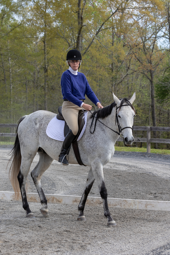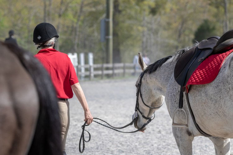 As the day warmed, I switched to a quiet pink shirt. When I tacked back up for the poles class, my groom suggested using Milton’s red pad. I had the red shirt in the trailer. Why not?