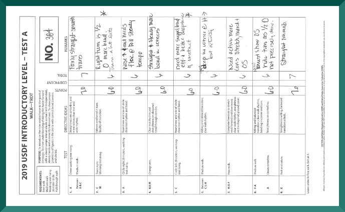 Class 3 – 2019 USDF Intro Test A (Walk-Trot) – Adult, 1st of 2, with 61.875%