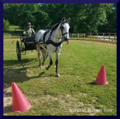 All of these have subtasks, such as seeing other horses hitched to carts, riding in a class with more than one other person, schooling in the open, driving in the ring with other carts, hitching outside the ring, surviving warm-up with a cart and so on, added to the skills mention previously [The Next Rungs On Milton’s Ladder Of Success].