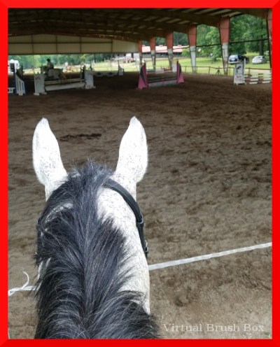 A rainy Saturday morning put our scheduled schooling in jeopardy. So, while the horses digested their breakfast, we went over to check out a local show. We had been to the farm many times with Previous Horse, but that was years ago. We wanted to make sure they hadn’t added an alligator-filled moat around the arena.