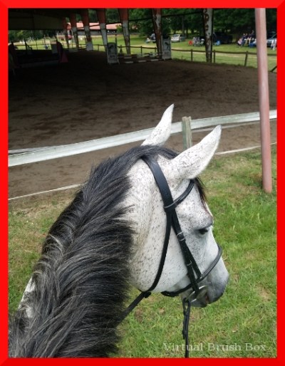 – He got fussy about standing at one point. One explanation is that he was bored/over it. Another is that the horse and rider in the ring were not having a harmonious ride. Milton does not like tension anywhere near him. If we yell at Rodney, Milton gets upset. Perhaps the horse in the ring was sending out I’m Not Happy signals. Your guess is as good as mine.