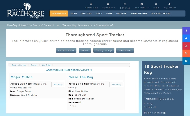 I added Milton and Previous Horse to the Thoroughbred Sport Tracker of the Retired Racehorse Project. The weirdest part of the whole thing for me is the RRP subtitle, “Increasing Demand for Thoroughbreds”