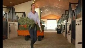 What i especially like is the barn aisle without a fleck of hay, poop or other debris, especially since she’s carrying loose hay! But what a lovely place.