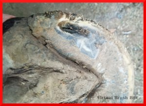 So much for our theory on Milton getting kicked [An Alternate Explanation]. Turns out it was a classic abscess. He picked up something that gradually worked its way up and out. Farrier says better to have them in the heel than the toe. Not as far to go. Also says that lameness from an abscess depends on several factors, including how close it is to any nerves.