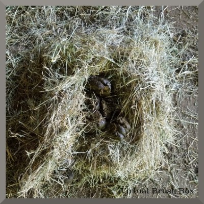 The rational part of my mind says that Milton pushed the coastal away and then moved about. The hay happened to end up under his nether regions. It is of note that the hay has still square from the bale.