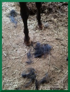 Wanna taunt a saddle seat trainer? Send photos after you trim manes and tails. Left, Rodney’s mane. Trimmed because he looked like a shaggy Muppet. Right, Milton’s tail. Trimmed off the ground to keep out ticks.