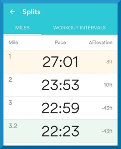 Pace – In my defense, dog came on the first lap. Took lots of waiting and part of my sandwich to get his short legs all the way around the pasture. For the rest of the laps, attempted to balance meditative strolling with picking up the pace so I wouldn’t be out there all day.