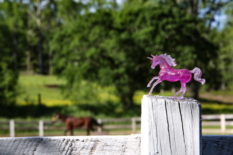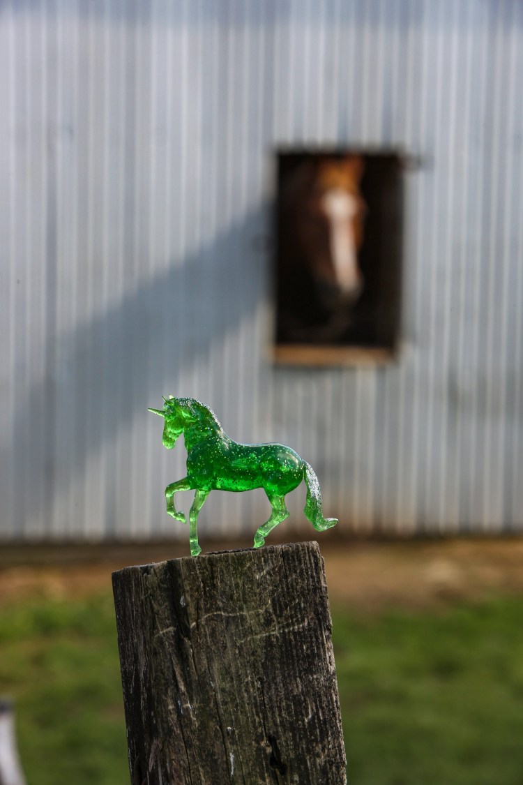 The American Saddlebred horses at Stepping Stone Farm are a pretty cool bunch. Upon arrival, the unicorns certainly caught their attention. But, once their curiosity about the glittery visitors was satisfied, they returned to grass grazing. Horses have priorities.