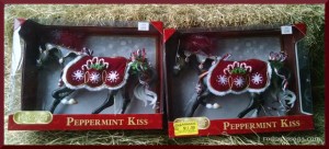 Peppermint Kiss. Model #700118, mold #728. “The Gem Twist mold was introduced in 1993 and is a portrait model of Olympic and World Champion show jumper Gem Twist … The model was sculpted by Kathleen Moody. Identify Your Breyer: Gem Twist [Shopping Bonanza]