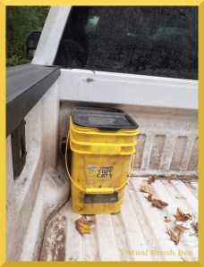 I decided to give it a test run on our schooling trip. Took old cat litter bucket, filled with shavings, added tp and plastic baggies for post-tp. Installed in trailer once horse was decanted. Voila, portable potty.