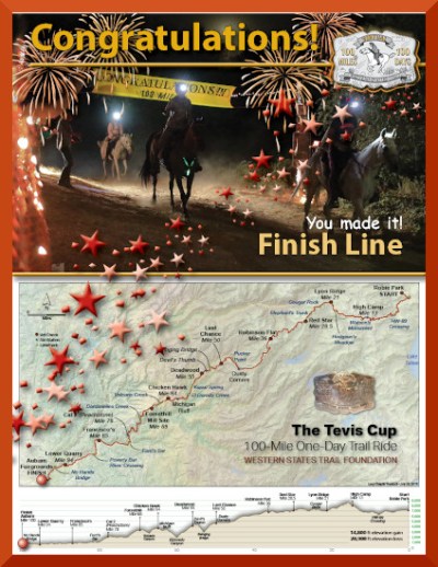 Finish line, 100 miles. Image source & additional photos, The Tevis Cup: Finish Line.