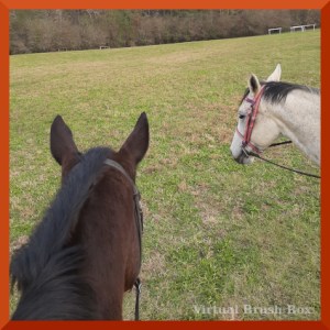 Well, both horses have been to Full Circle Horse Park multiple times. We have all been to Stepping Stone Farm together. The way these two see the world, we knew this trip would qualify as a bold, new adventure. It did. Everyone was good. Horses held it together. Riders rode their horses well. Everyone was exhausted when we got home.