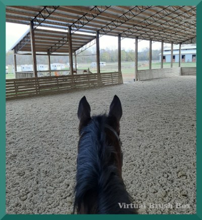 Saturday. Full Circle Horse Park. Walked hither! Walked thither! Covered ring! Cross-country course! Jumping ring! Sandbox! Milton trotted in the covered! Milton trotted around a jumpless course!