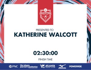 This is my second Peachtree Road race and the first virtual. I think Kathie and I both go faster when there is a crowd of runners. Otherwise we set into a 3.3 mile an hour pace, regardless of 5K or 10K. I am looking forward to the next P’tree. I hope it isn’t virtual next time.