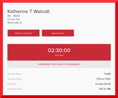 Finishing at all is the first milestone. Congratulations, Katherine!