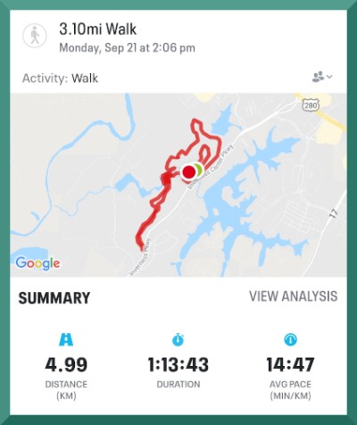 Update: This was my Monday 5k the week I did three walks. Was waiting for medal before posting. Finally gave up. It had been so long since then & I did so many more walks later in the year that I forgot to opine on the three-in-one. Not much to say other than ‘Can I do it? Yes. I did it.’ [Wednesday, Friday]