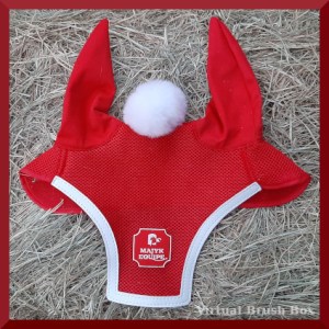 A photo shoot gone wrong. Milton looked tres chic with the red&white bonnet and red&white blinkers. Was not interested in showing them off.