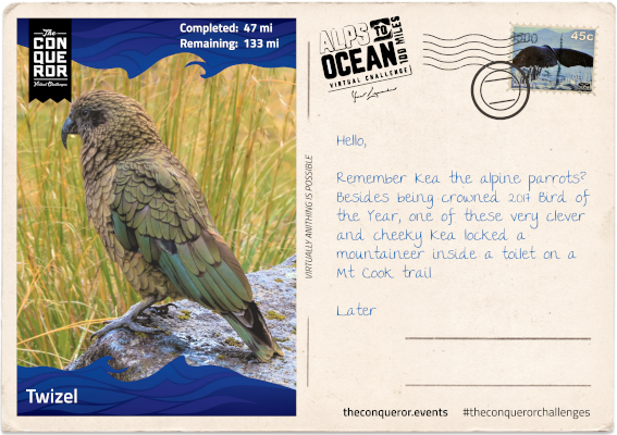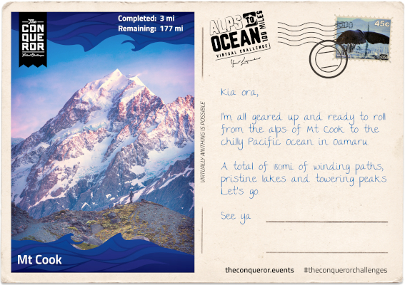 Conqueror Events: Alps to Ocean challenge website, sender of postcards