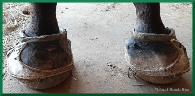In other hoof news, looks like last month’s extended footsoreness was due to a bruise. Photo shows remnants. Blacksmith says that injury happens where there is circulation. By the time you can see it, the horse is over it. [Leading His Best Life]